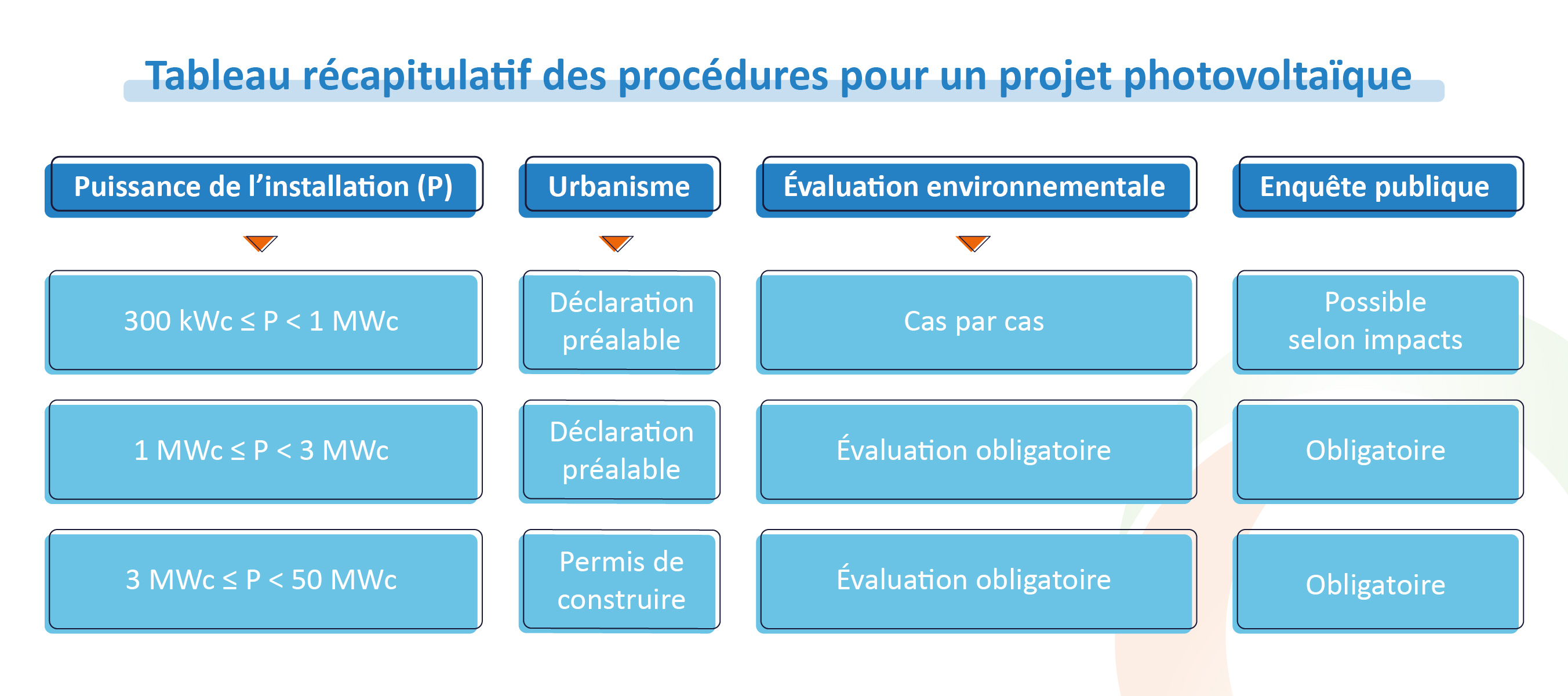 - À partir de 1 MWc, une évaluation environnementale complète est obligatoire, ainsi qu’une enquête publique d’au moins 30 jours.