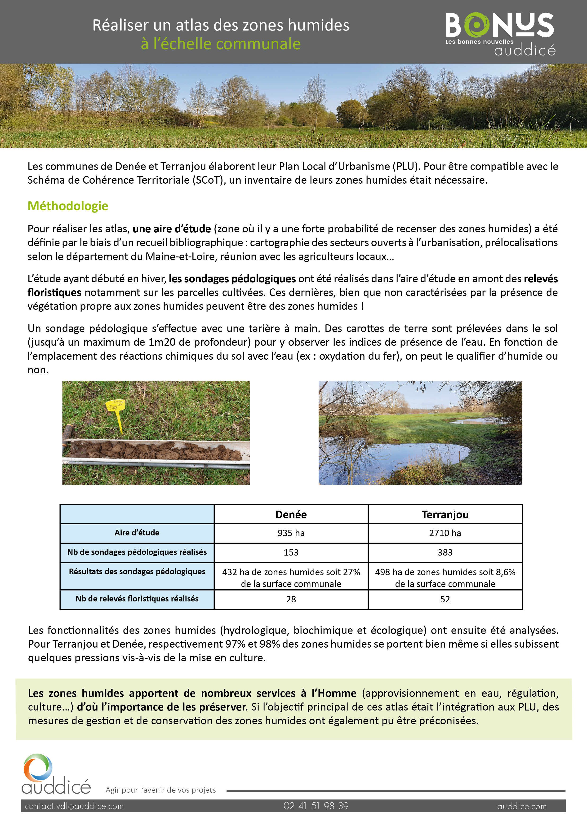 Les communes de Denée et Terranjou élaborent leur Plan Local d’Urbanisme. Pour être compatible avec le Schéma de Cohérence Territoriale (SCoT), un inventaire de leurs zones humides était nécessaire.